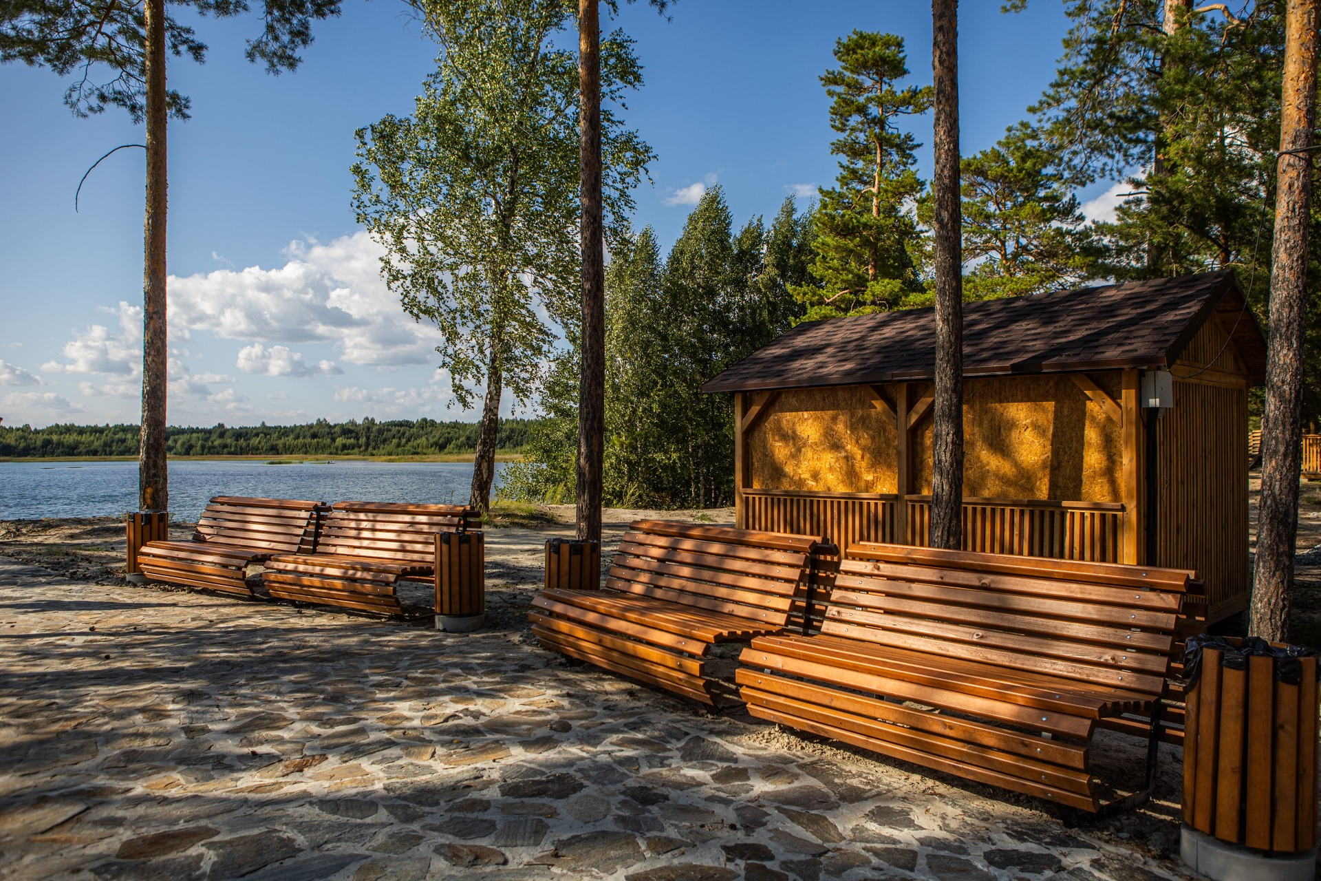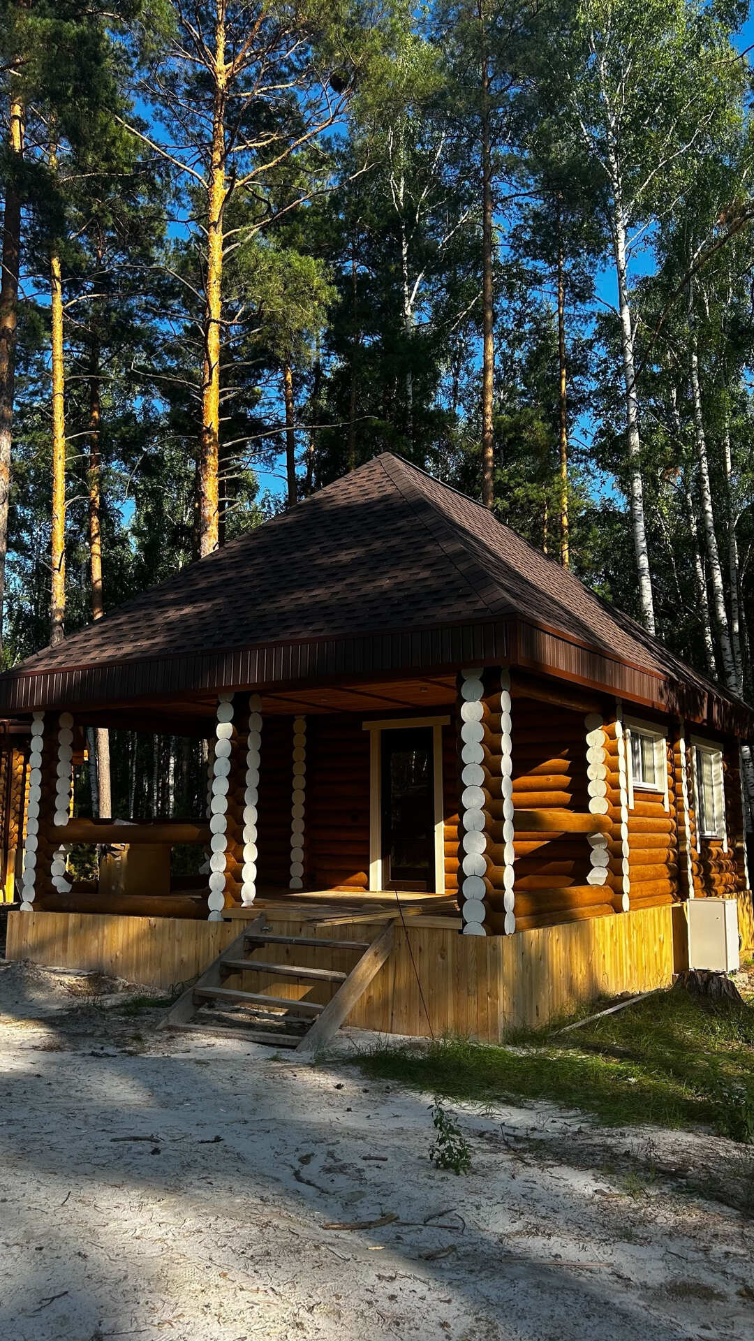 Отдохните в уютных домиках из натуральных материалов, сливаясь с природой. Отпразднуйте торжество в просторном банкетном зале с видом на озеро, а после расслабьтесь в жаркой бане. Для комфортного отдыха гостей всех возрастов предусмотрены беседки у воды и современная детская площадка.